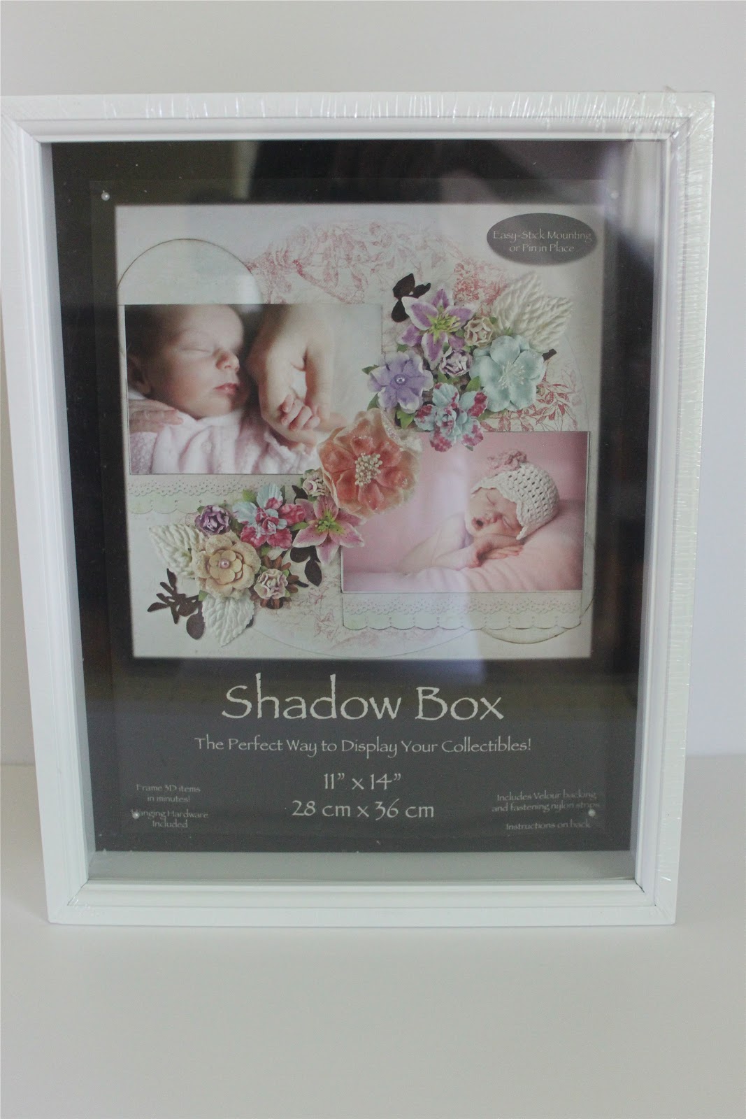 Hot glue the mat down to the backboard of the shadow box and put it back together. Such an elegant and personalized gift, don’t ya think!