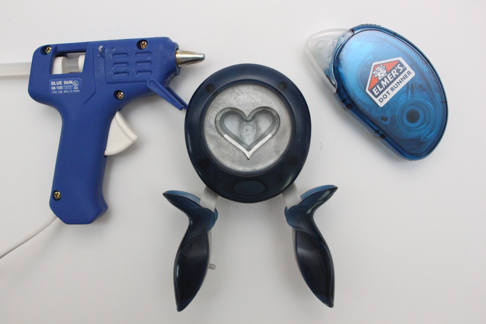 You will also need a heart punch, hot glue gun, and a glue dot tape runner.