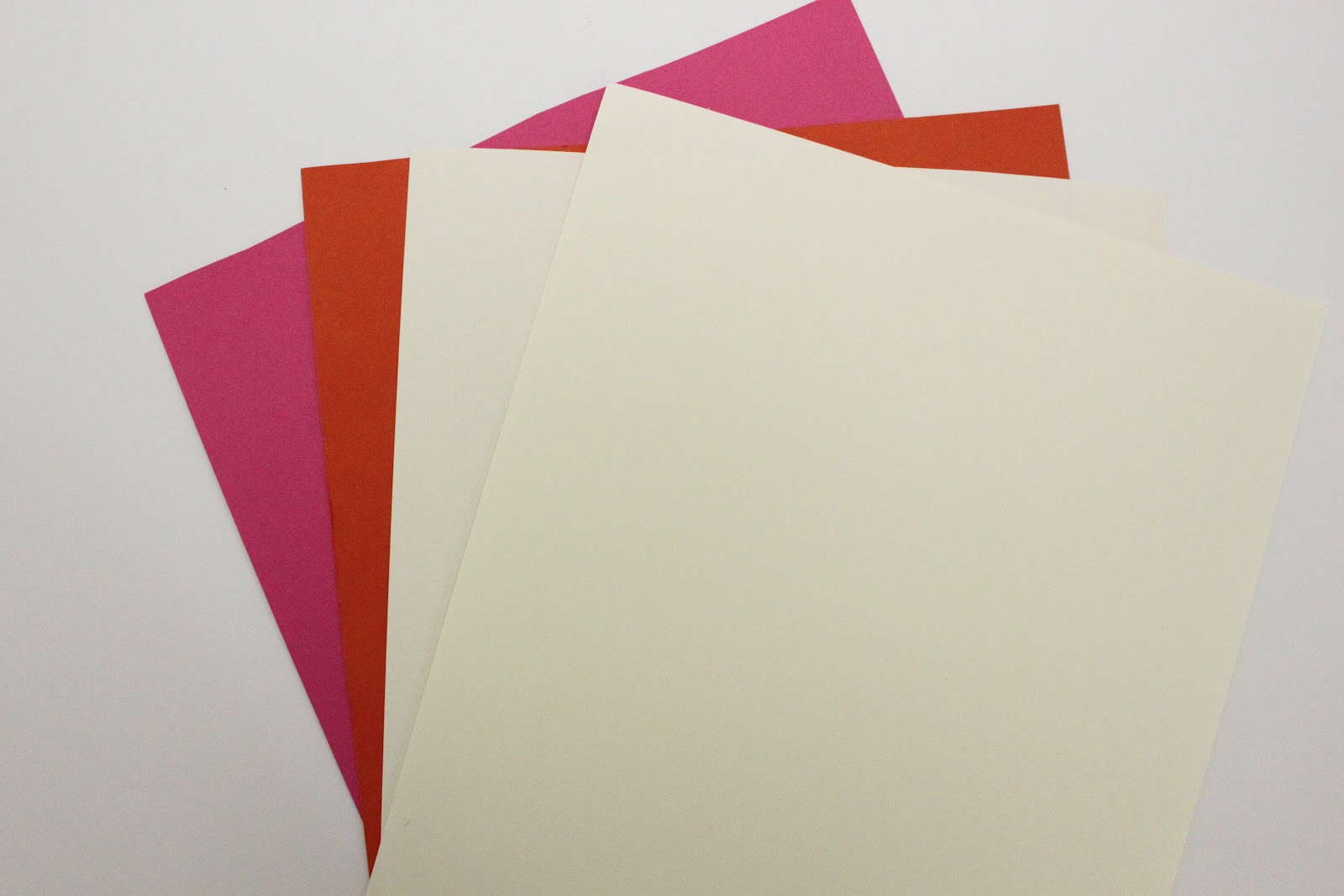 Then I just bent the cream colored heart in half, lightly, and hot glued them down to the white scrapbook paper that I glued down as the background. I left the orange and pink hearts flat just to show a bit of varying dimension.