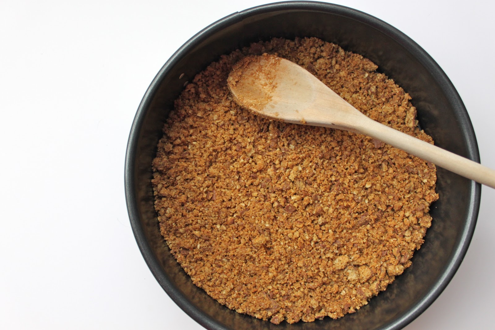 Pour the cookie crumbs into a bowl and add 4 tbsp of melted butter. Mix well.