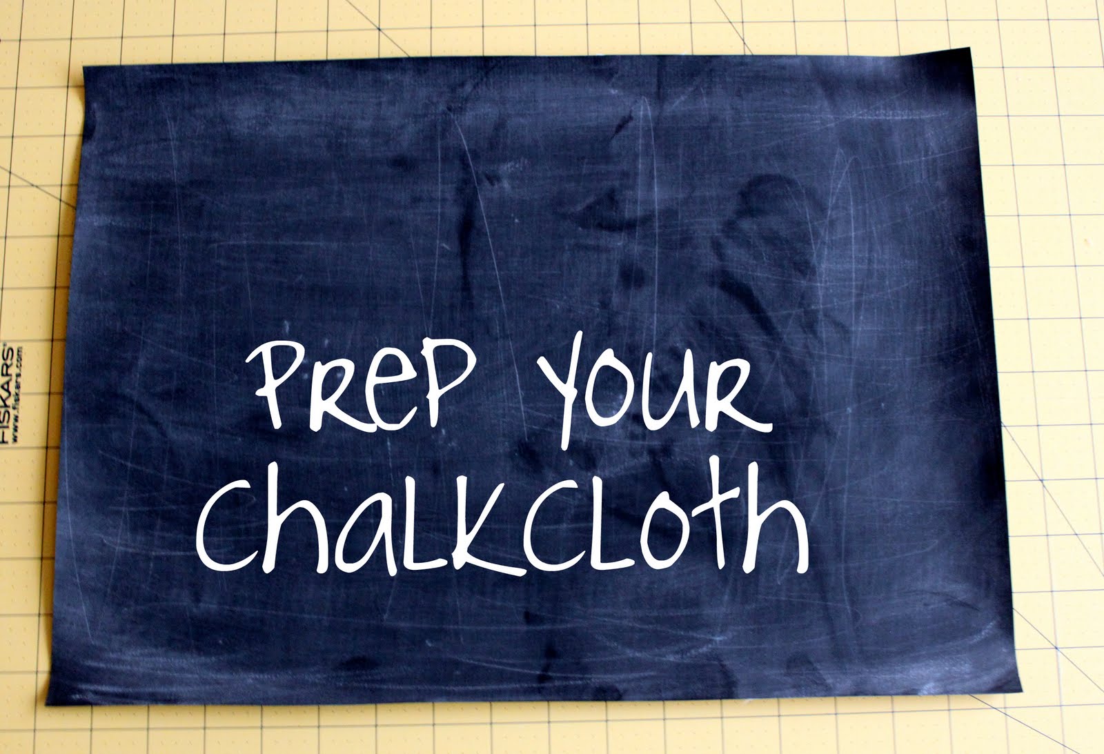Then, prep your chalkcloth by rubbing a piece of chalk on it’s side left to right and up and down. Wipe off and do it one more time!