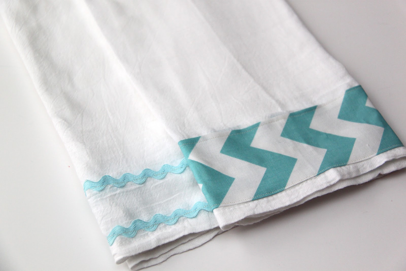 You can sew a few strips of ric rac along the same edge of another tea towel for the perfect handmade gift set or hostess gift, you name it!