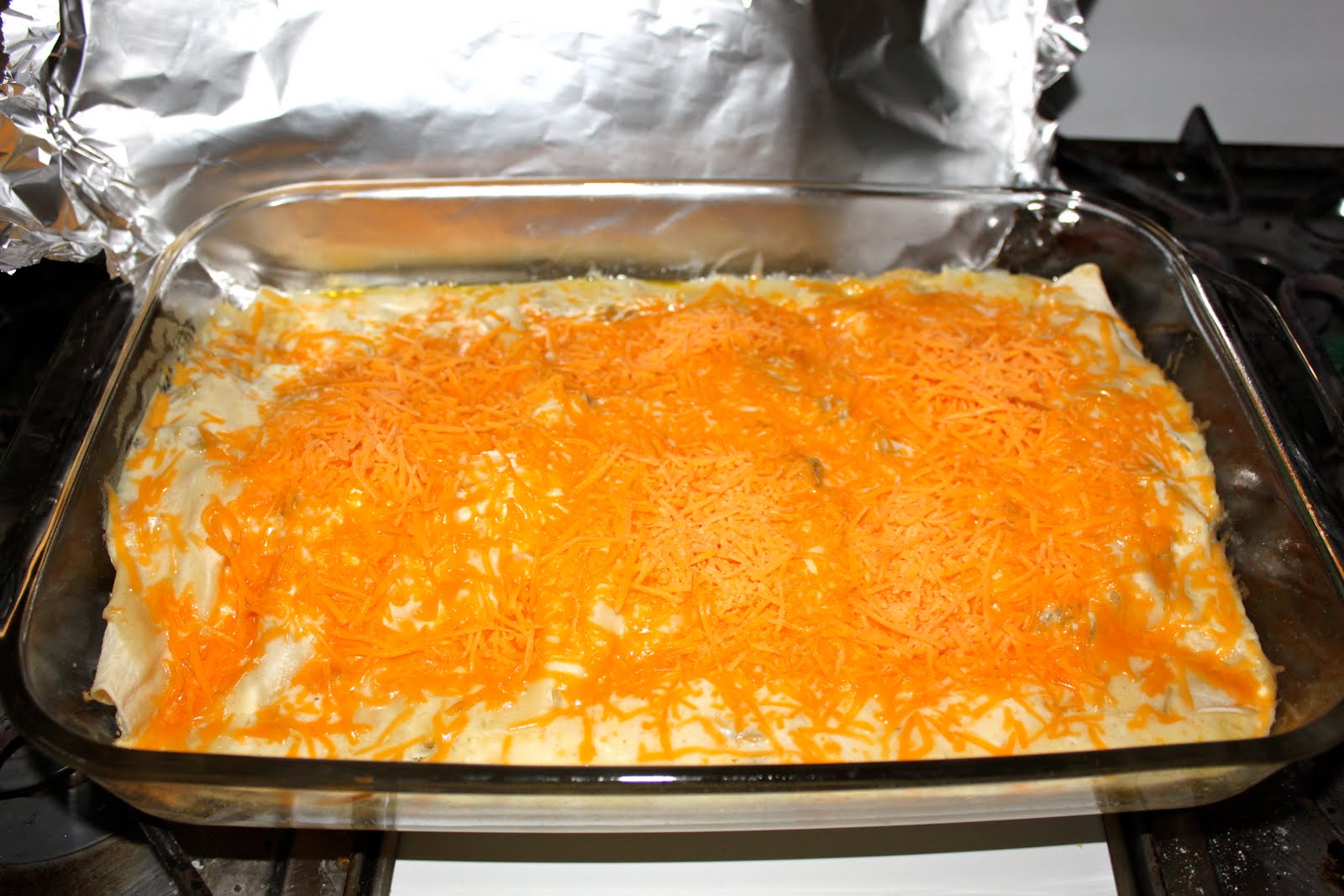 So here is what we had for dinner last night…Creamy Chicken Enchiladas. They are a favorite at our house, soooo cheesy and creamy and they taste like they are soooo bad for you but in reality they are a fairly healthy meal! Can you believe it?! Yup, you just need to use low-fat cream cheese and sour cream and a fat-free cream of chicken soup and you are all set for a deliciously healthy dinner! Woot Woot! for a healthy meal!