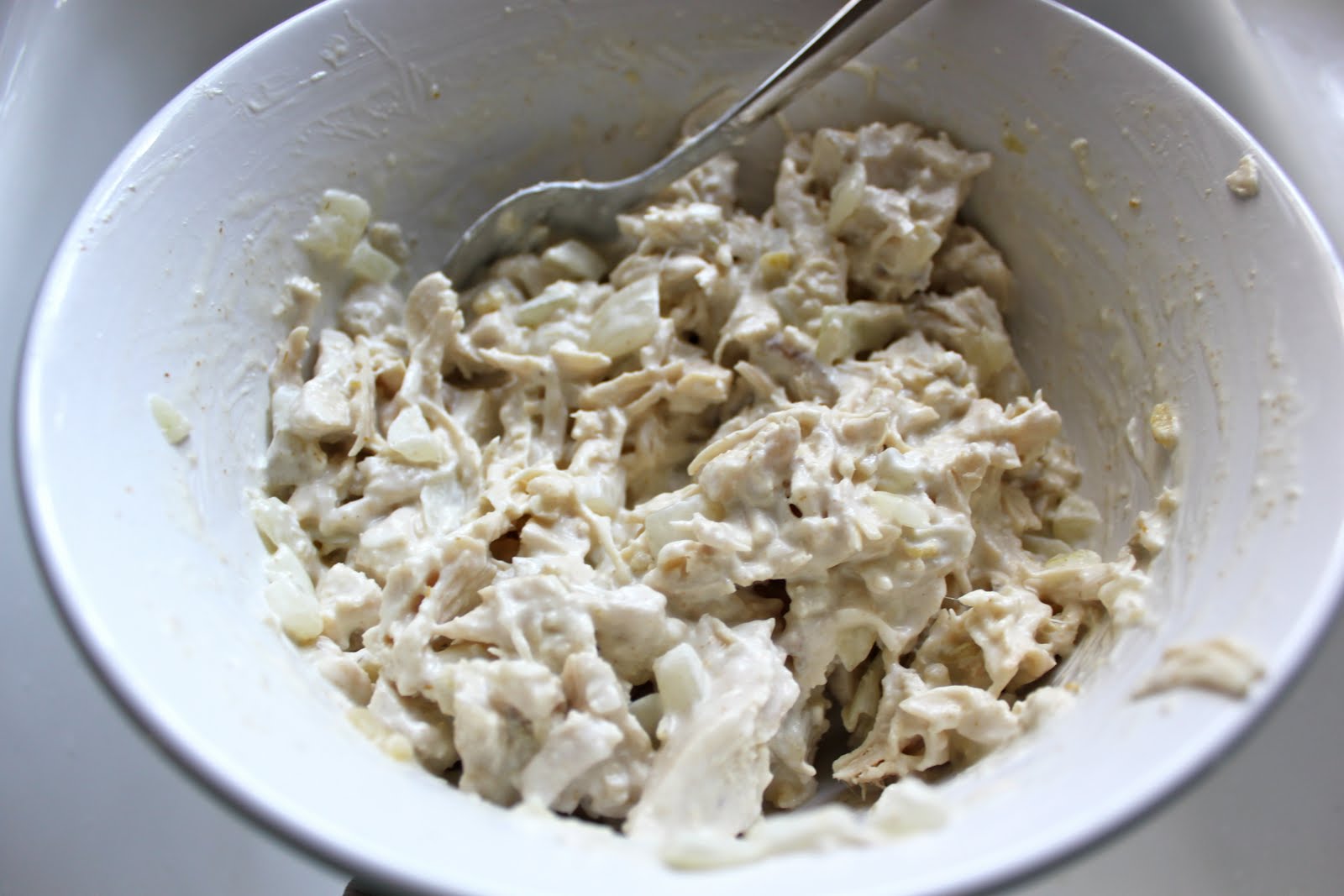 - Shred your chicken and add into the bowl along with the onion and green chile mixture.