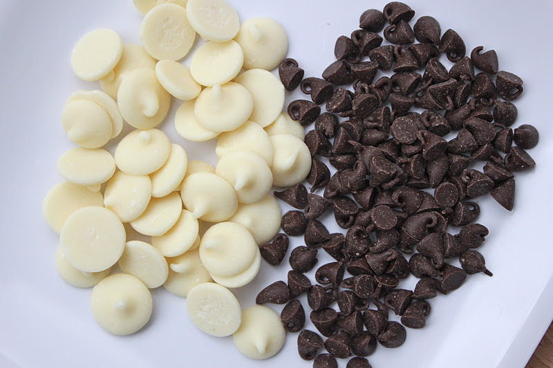 And add in your tablespoon each of white and semi-sweet chocolate chips.  Who’s hips are getting fat just thinking about this?