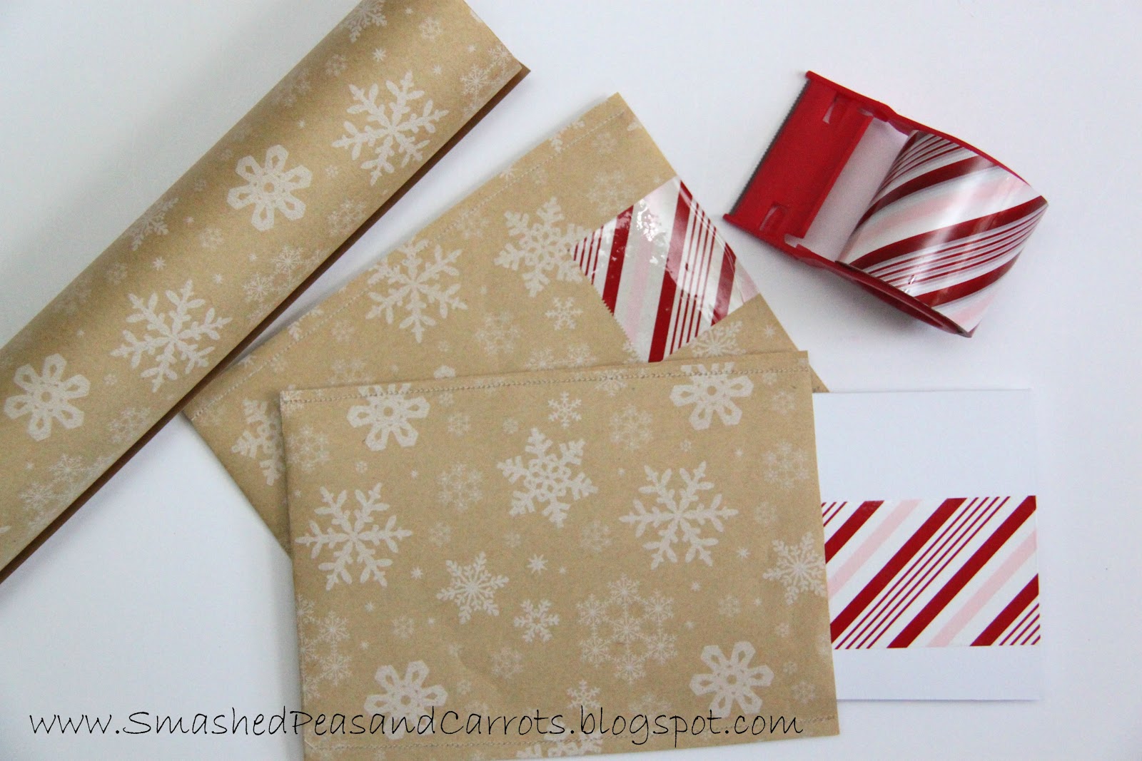 You could use the coordinating gift labels on the outside of the envelopes or just handwrite the name of the recipient. I used the decorative packing tape to close the open edge of the envelope for a nice coordinated look 🙂