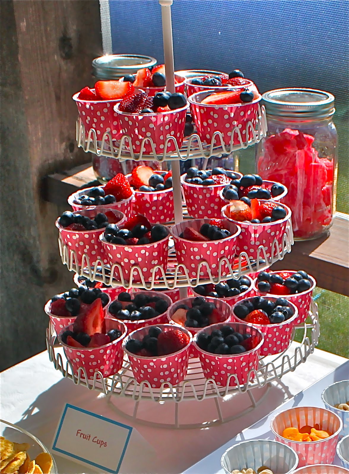 I offered blueberries and strawberries, going with my blue and red theme again, in the cutest little cups (also from Shop Sweet Lulu!)
