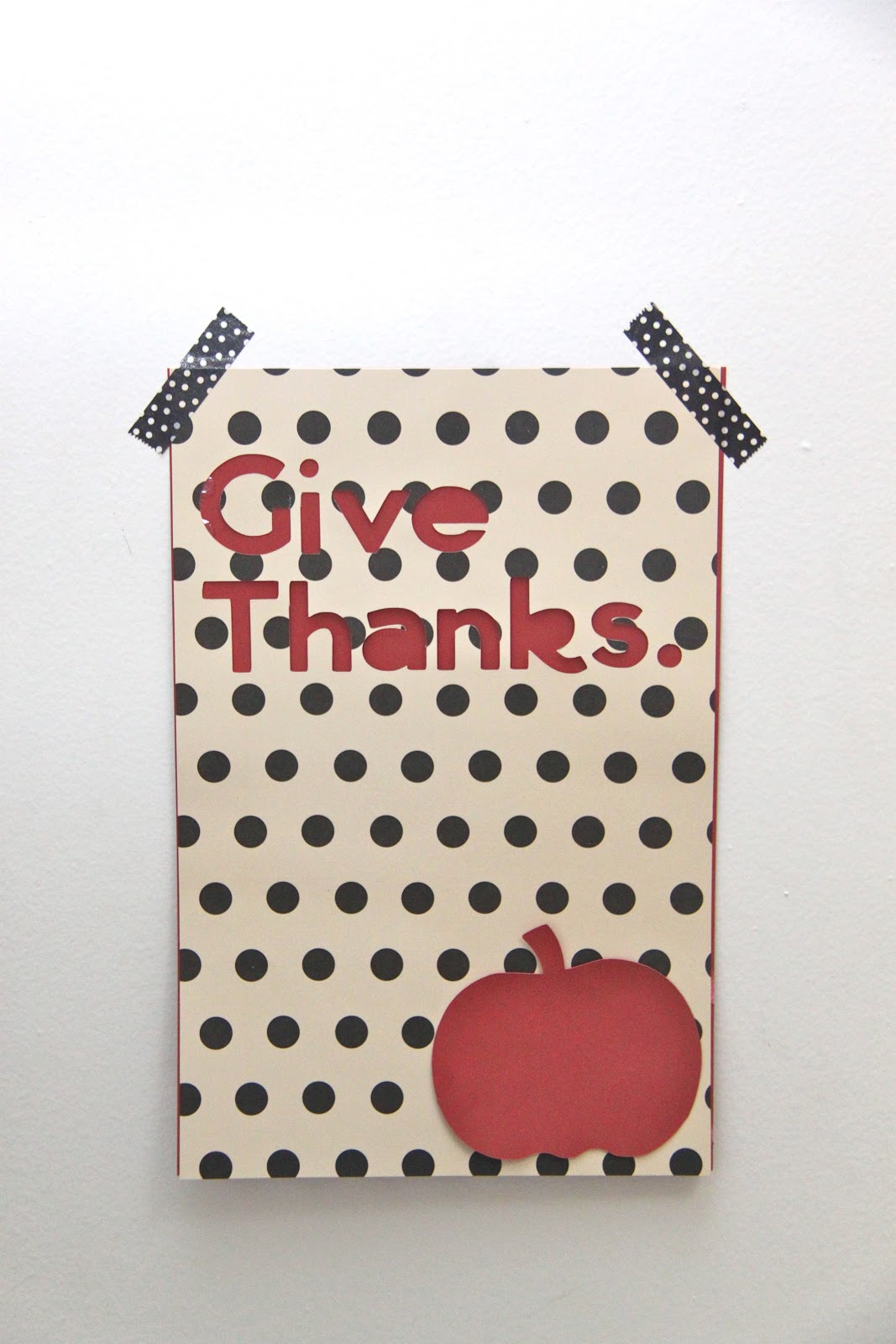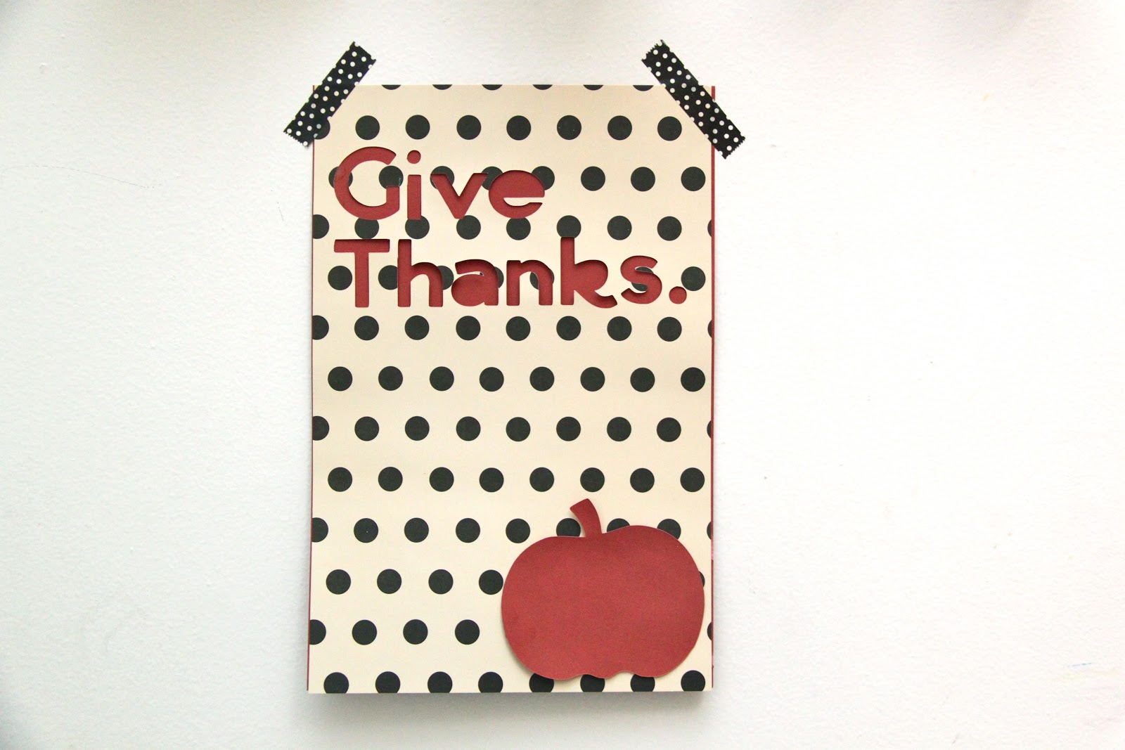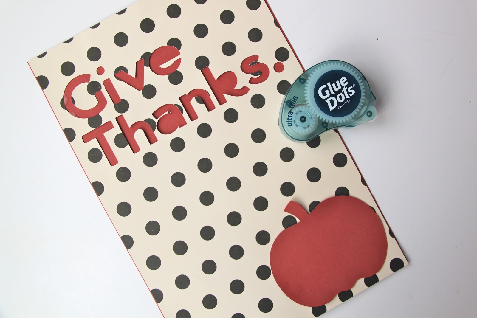 Then, I used glue dots to stick the polka dot card stock to the burnt orange one and then placed the cut out pumpkin on top in the bottom corner. I love the layered look of this!