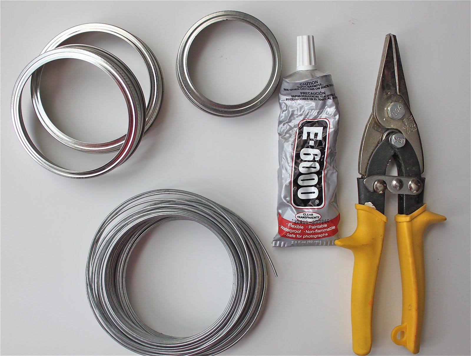 Slowly squeeze the E-6000 around the lip of the inside of the mason jar ring. Place the cut lengths of wire in place and arrange into a grid. Let the frog lids dry for a few hours up to one day.