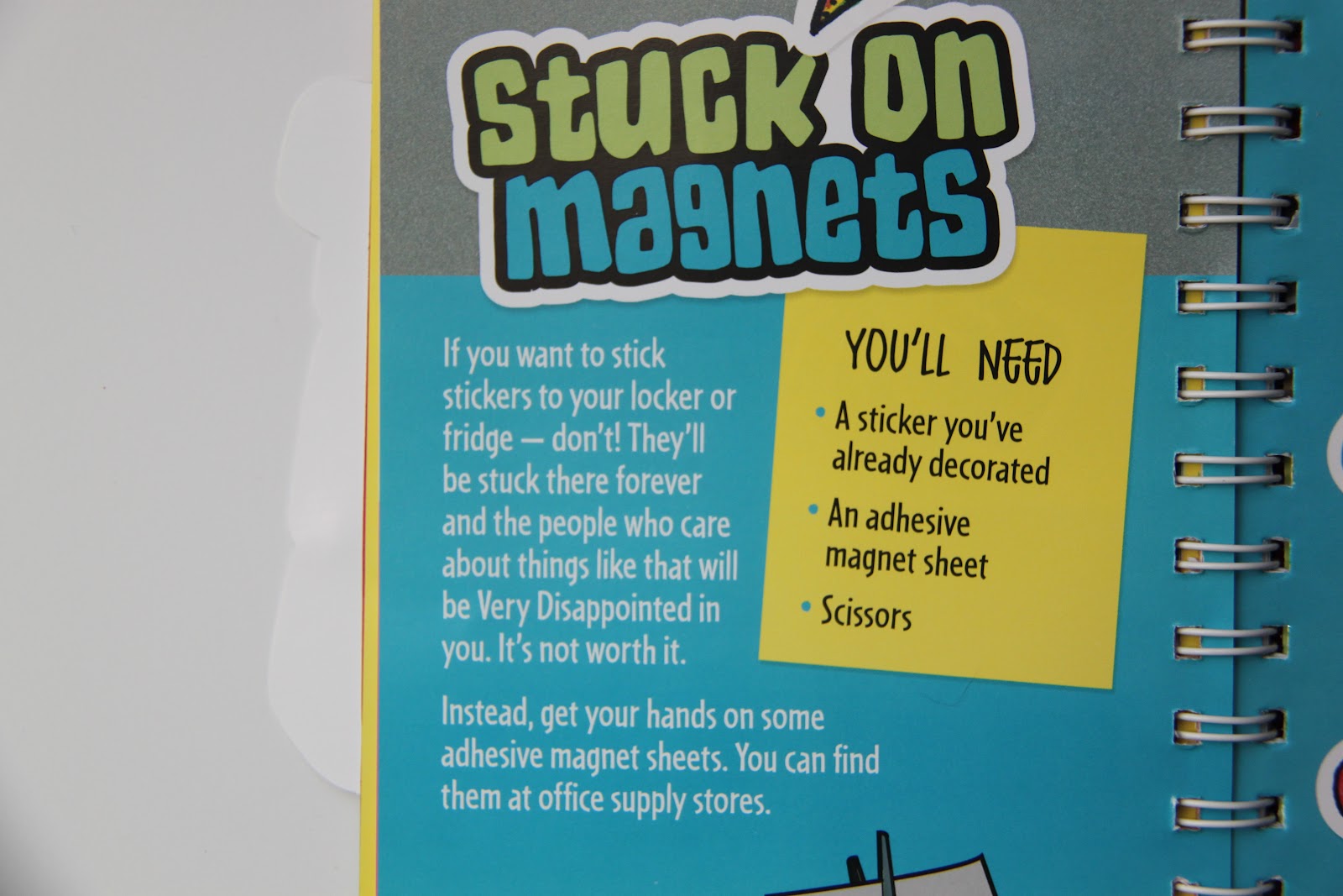 There are even quite a few pages on fun ways to make your stickers last…ie, making them into a magnet or laminating them. I love that Klutz books always go above and beyond just the basic activity.