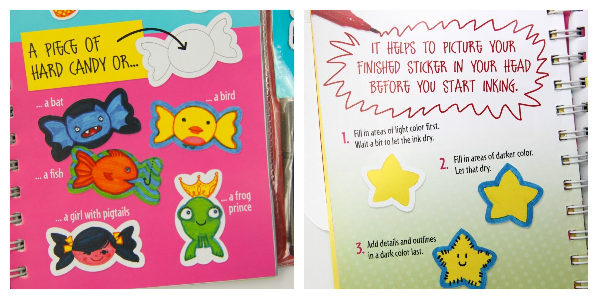 Of course, like all Klutz books, this one comes with quirky instructions written perfectly for a child to understand. If you have small non-reading children like me, you will just want to relay the message to them so they can get the most out of their sticker crafting time.