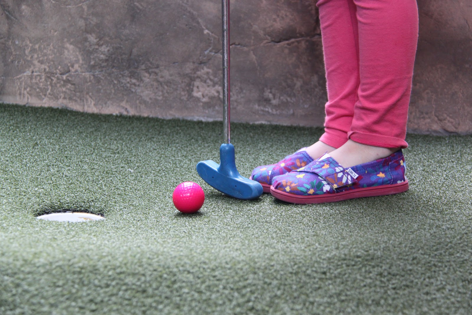 The last thing we did before we headed back home was get in a good game of mini-golf at Moose Mountain Adventure Golf, MOA’s very own 18-hole miniature golf course. The kids were begging to go here as you could see it from the amusement park and it looked so neat with its rocky and rugged stone look.