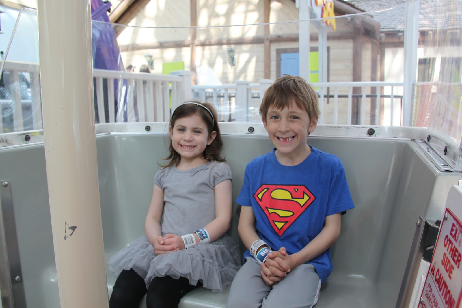Here is our view point from the very top. It’s a pretty good sized amusement park. I also love how the roof over the park is made of glass so you feel like you are outside without having to deal with the elements–no rain, no intense heat–perfection for our little family!