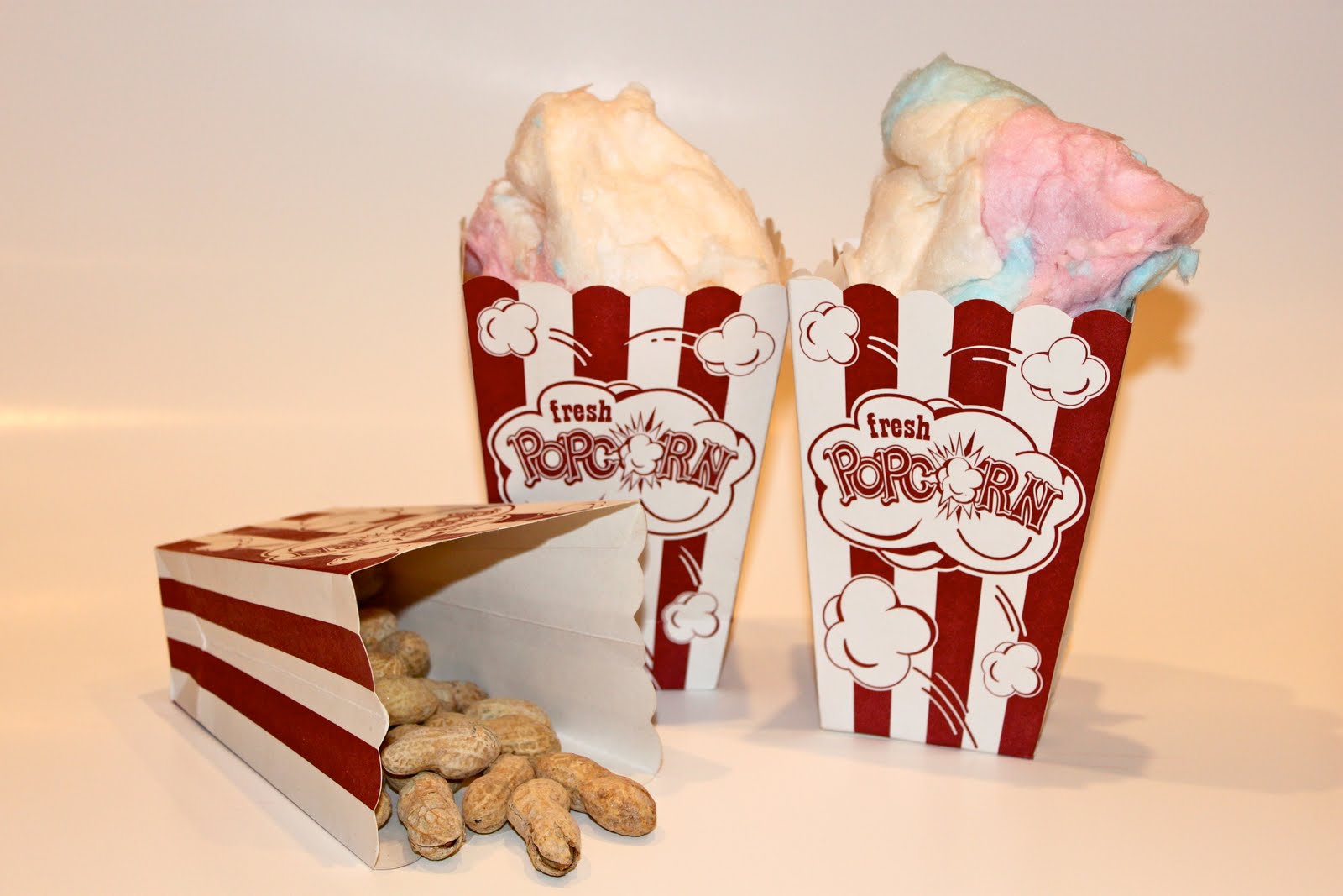 For some light appetizer-ish food, we had peanuts in the shell and cotton candy and then we had hotdogs and chips for the meal…which was a lunch by the way 🙂 We put the food in these nifty little red and white paper popcorn containers. I found them at Hobby Lobby for only a few dollars…love that! I also found some matching hotdog paper plates/liners there too…sorry no pictures of them!