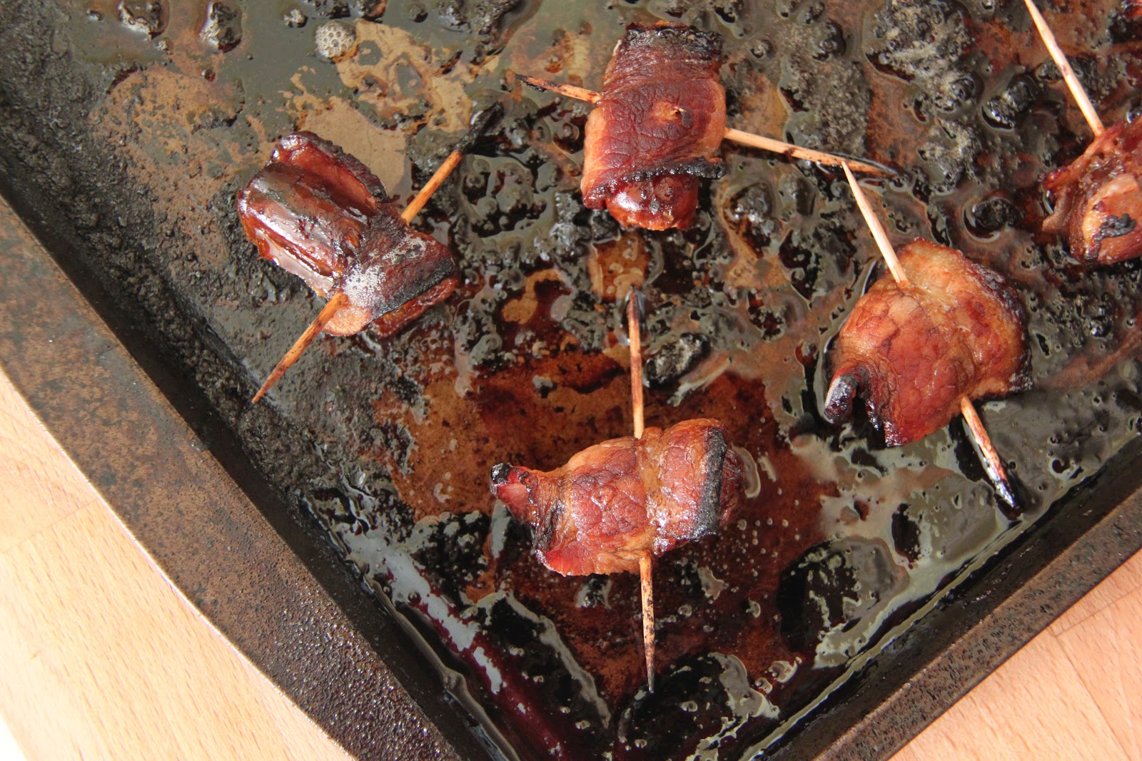 - Splash more balsamic over bacon wrapped dates and enjoy!