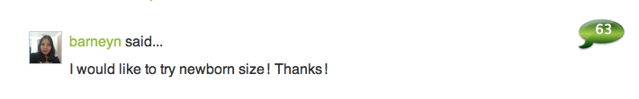 Congrats! Please email your mailing address to SmashedPeasandCarrots@gmail.com so we can get your Newborn Size diapers in the mail pronto! Yay you!!!