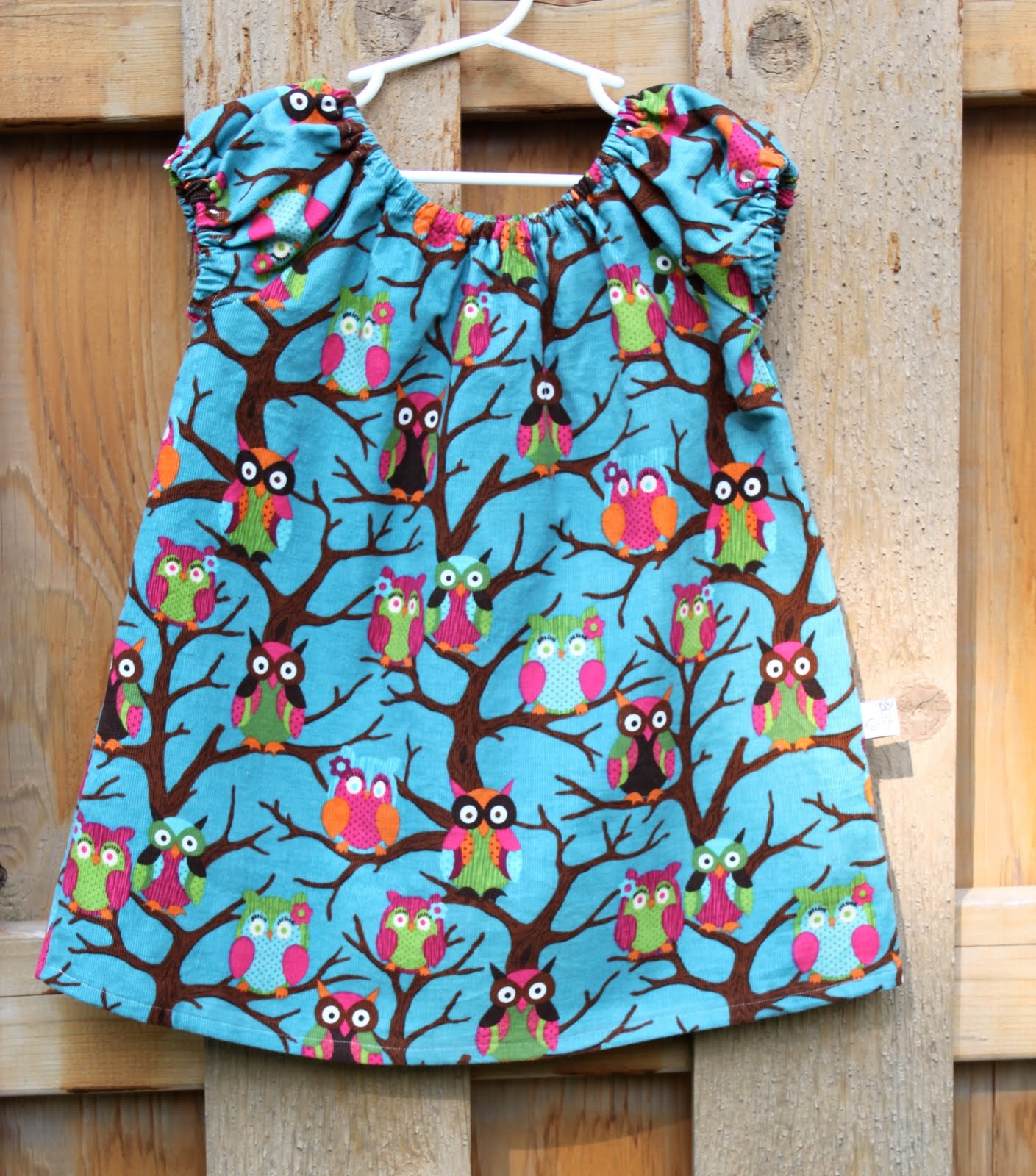 That owl corduroy is amazing. I love it so much! Cute little outfits. I was working on peasant dresses today too, and now I’m jealous of your corduroy.