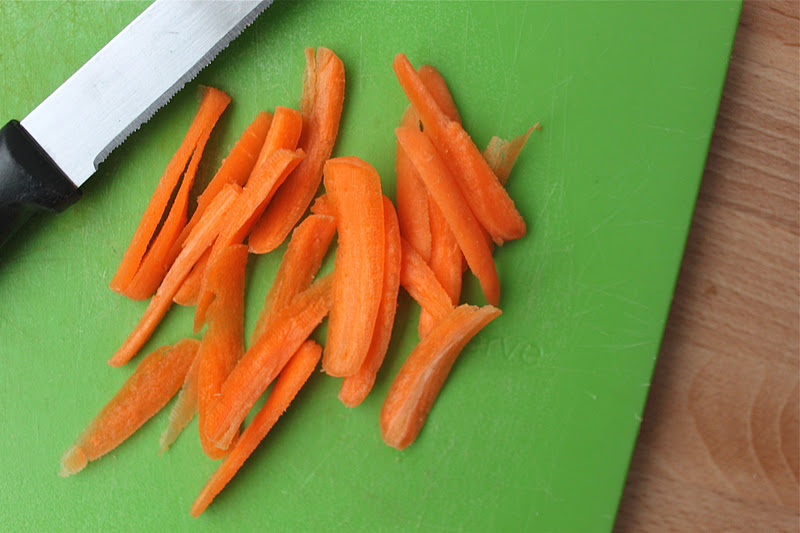 - Veggie toppings such as julienne carrots, red peppers, cabbage