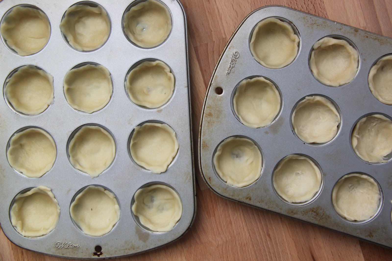 - Place the pie crust in an ungreased pie plate or divided into the tins of a mini muffin tin and set aside.