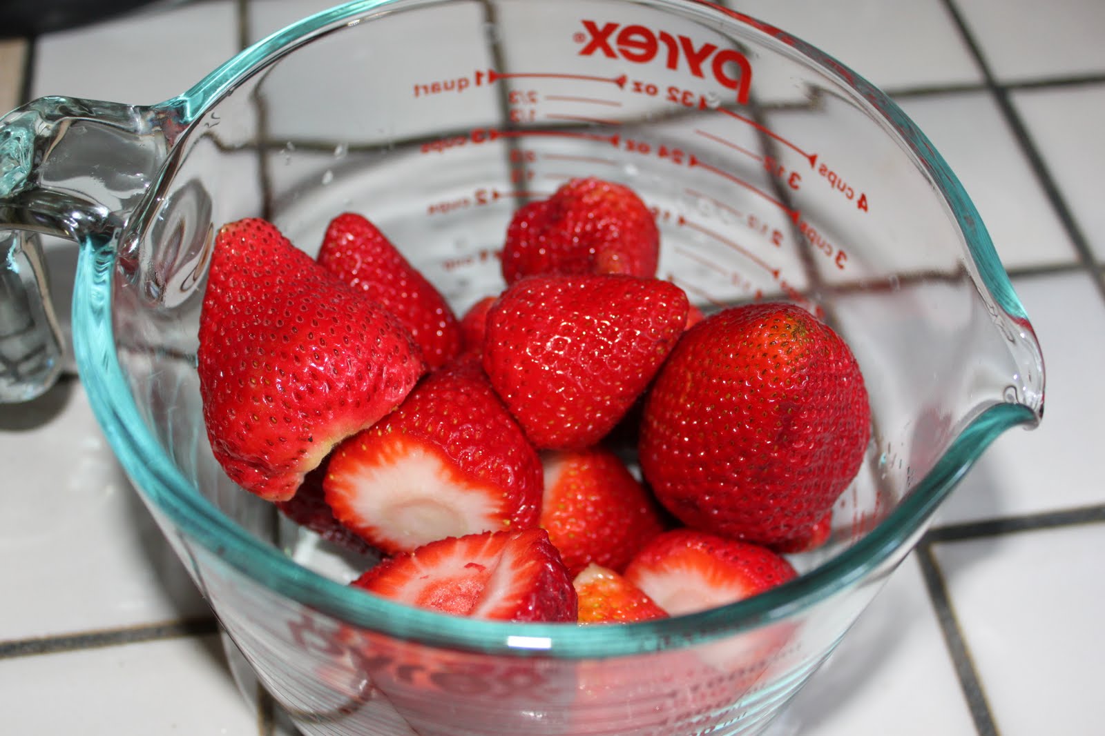 Ok, so first grab your fresh strawberries (about 4 cups-ish gives you 2 cups mashed)…