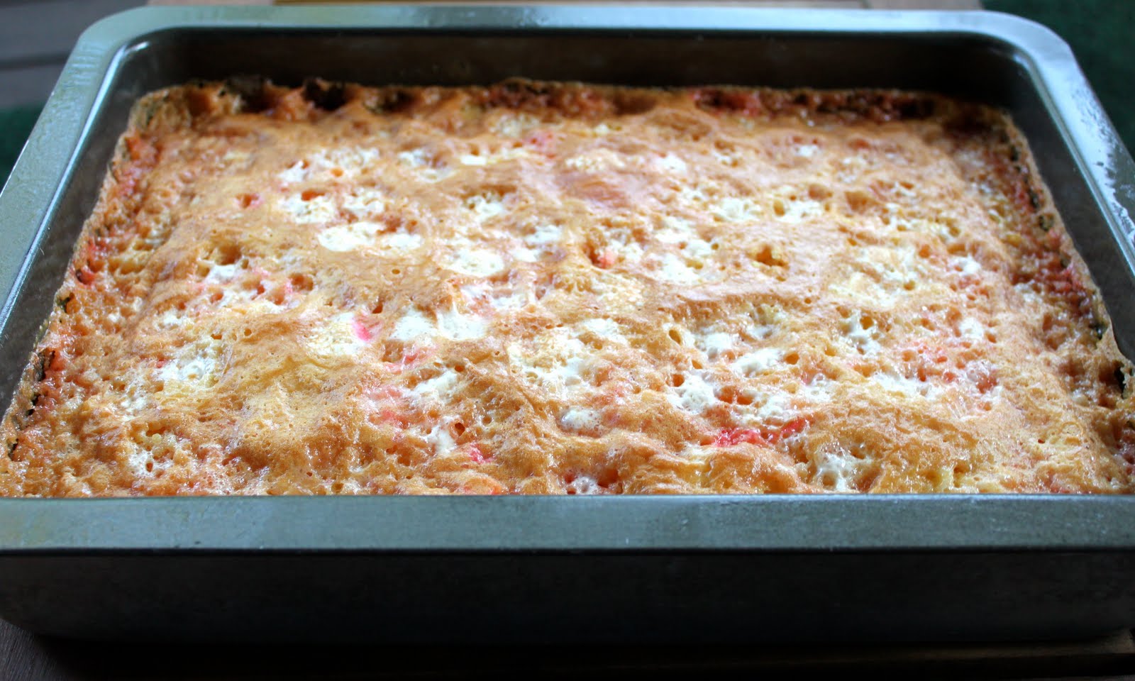 - Prepare your cake as directed by the package and pour on top of the marshmallow layer.