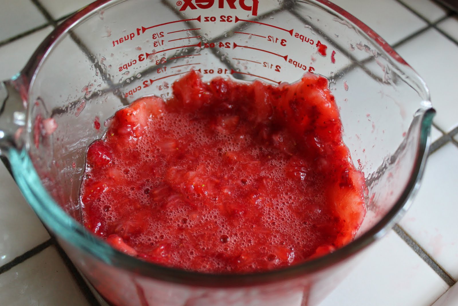Ok, so first grab your fresh strawberries (about 4 cups-ish gives you 2 cups mashed)…