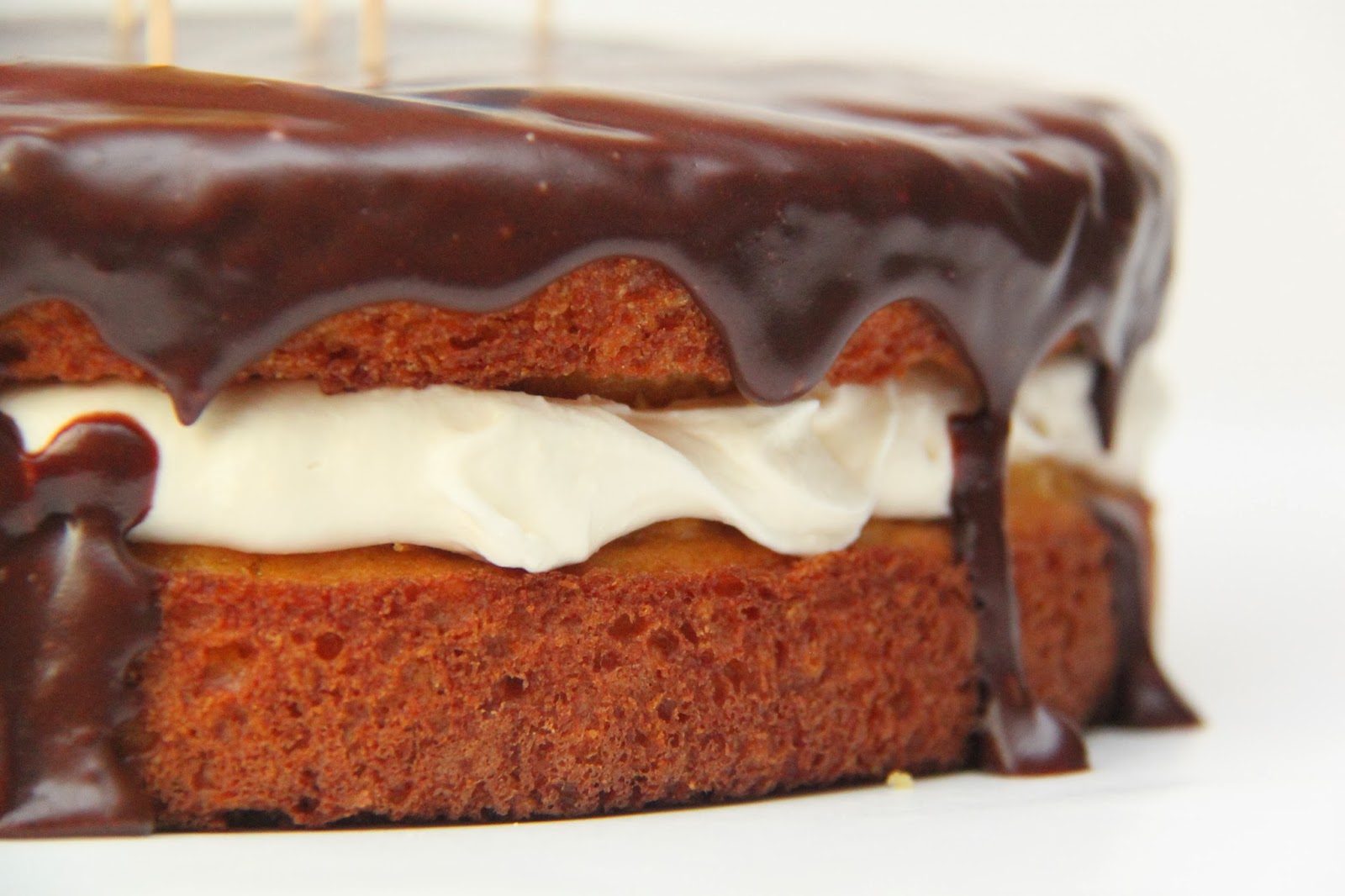 - Spread all the pudding mixture on top of one of the cake layers and then place the second cake layer over top.
