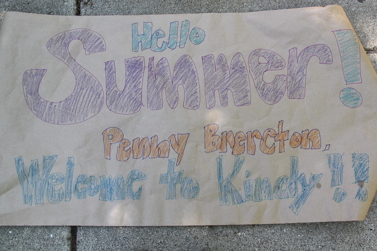 The kids and I made her a “Hello Summer” banner to run through and welcome summer with a bang.