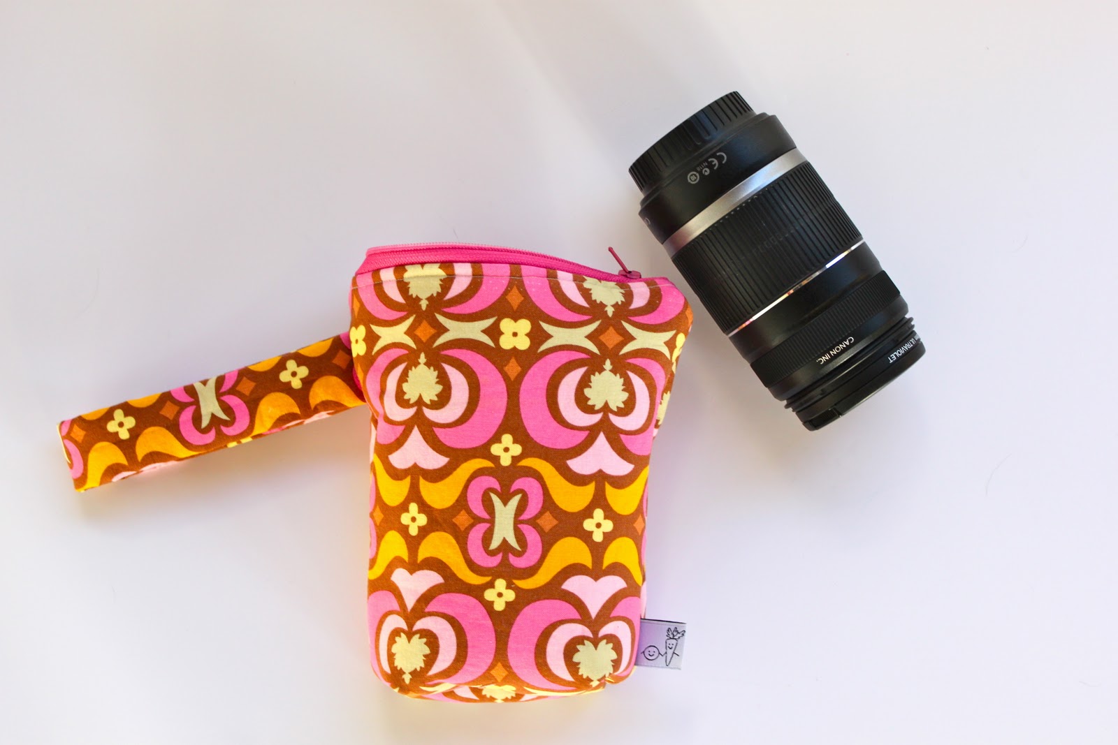 So, I have been wanting to make a little pouch for my DSLR camera lens for a while now and this past week I finally did it! I was getting so tired of wrapping it in burp cloths and onesies in my diaper bag whenever I took it on our little family adventures we tend to do. I wanted to have something that would protect it a bit, especially keeping that lens cap from getting bumped and falling off, as well as something I could keep on my wrist or clip to my diaper bag strap for easy access. I usually just have my shorter 18-55mm lens on the my camera for stuff around the house but when we go out I like to have the option of using my longer 55-250mm lens cause that way I can capture the kidlets doing cute stuff without them knowing that I am taking their picture. What a sneak I am!