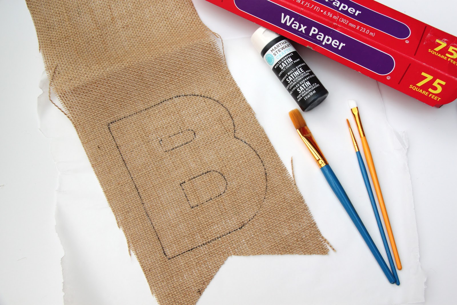 I traced each letter onto the flags with a marker like so…making sure to have ample room at the top of the flag so I could stitch a casing for the twine.