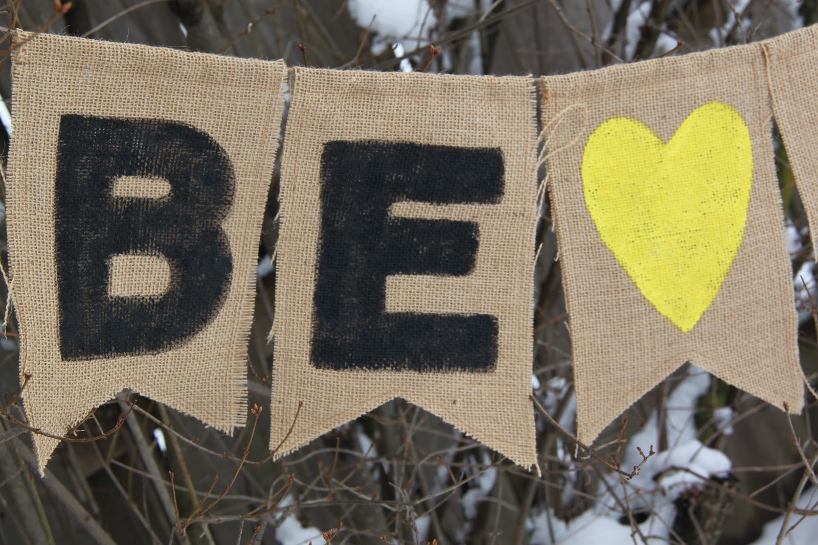 Then grab your paint and a brush and thoroughly paint in each letter (I used Martha Stewarts Satin Finish Craft Paint!) Once it is dry, fold your flags in half. Using your sewing machine, make a casing for the twine by sewing a line about 1/2 inch from the fold. I also stitched all around the side of the flags and the bottom as well to keep the flags as one unit.