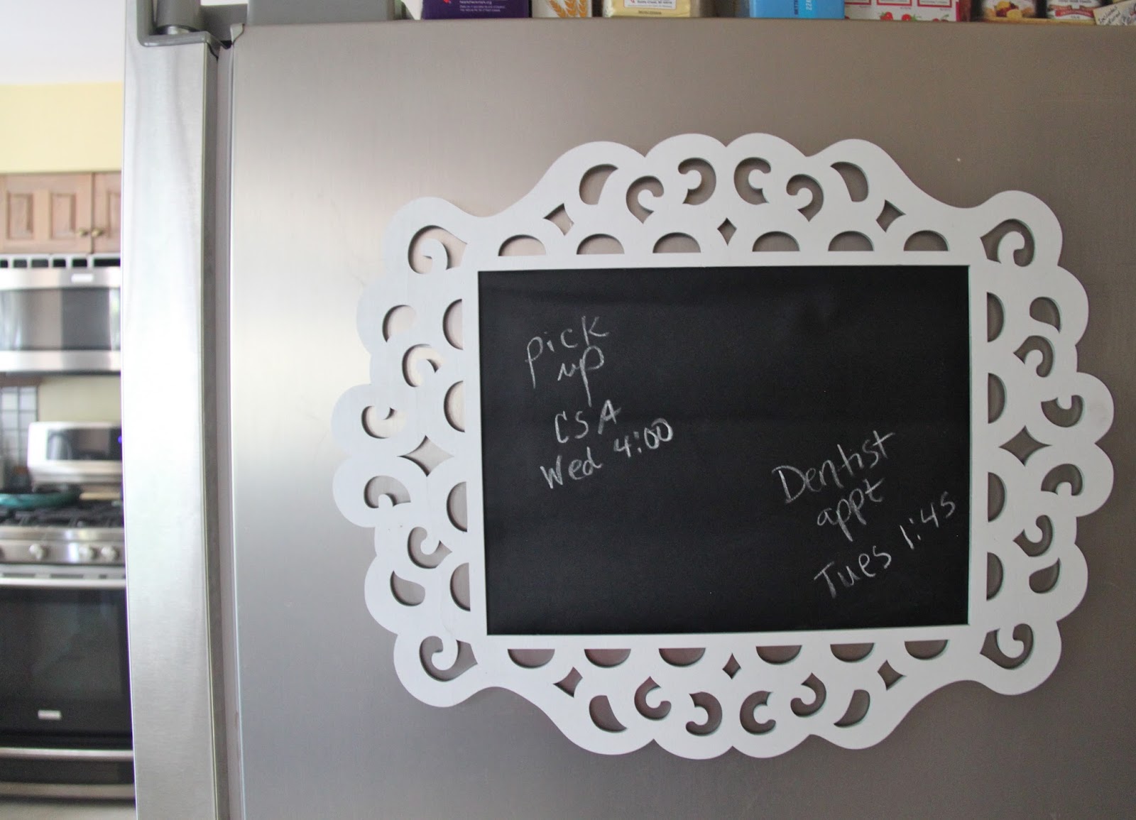 Cute! I love that frame, and the chalkboard vinyl has to be pretty awesome. =)