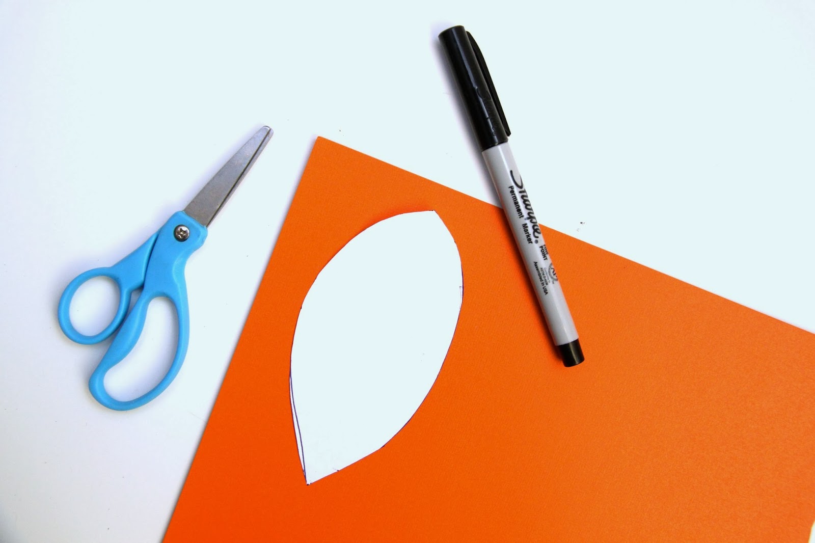 To make your turkey you will need a pair of scissors, a pen of some sort, googly eyes, and a hot glue gun or glue stick.